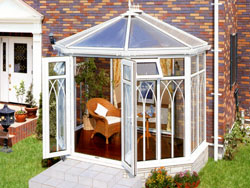 伝統的なデザインのイギリス製です。屋根は複合パネルで、窓は強化複層ガラスです。